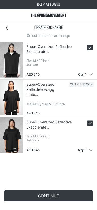 Note: You can raise an exchange request only once per order. Make sure to select all items you wish to exchange at that time. Once an exchange request is submitted, no additional items from the same order can be included.
