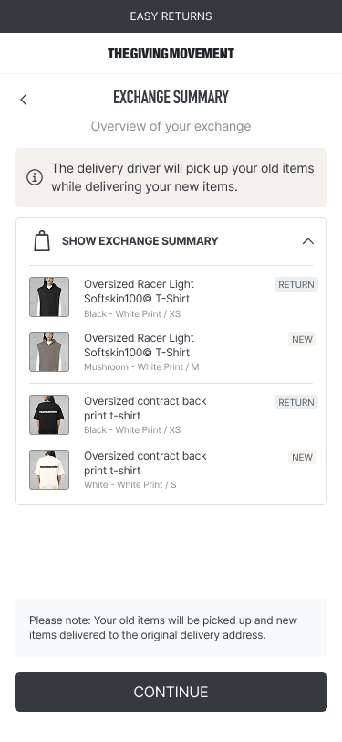 8. After clicking “CONTINUE,” review your exchange summary carefully, then click on “CONTINUE” again.