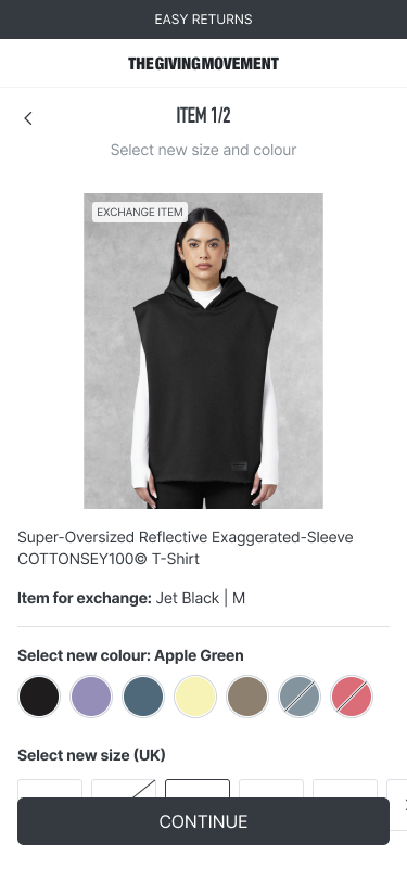 7. When selecting the item(s), please choose the color and size you would like to exchange them for.